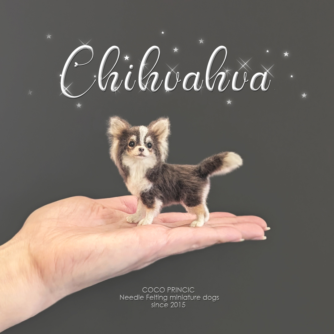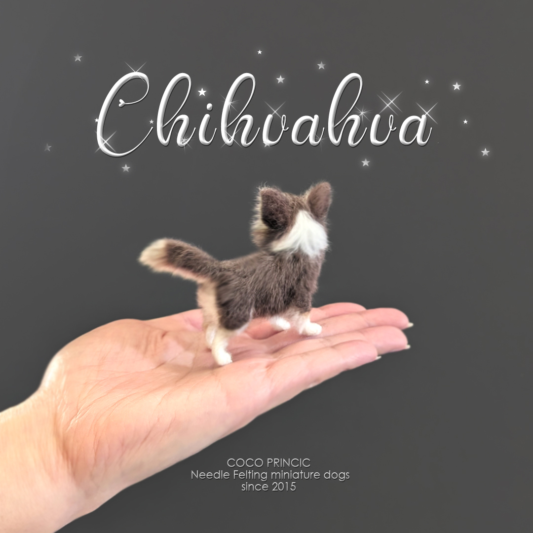 Product name: ミニチュア羊毛フェルト犬【6.8cmのチワワ・チョコタンホワイト】1:6スケール ブライス Needle Felted Miniature Dog / Blythe / Dollhouse