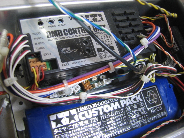 戦車の前進後進、旋回(車輪の回転のみ確認)はプロポの操作で動作しました。その他の砲塔回りの動きや音声出力は動作しませんでした。