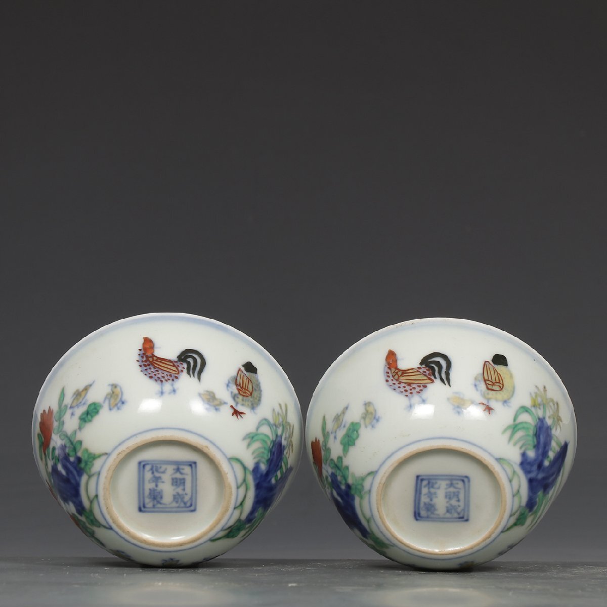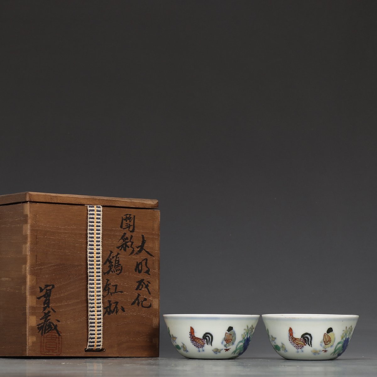 Product name: 【安】明時代 大明成化年製 斗彩鶏缸杯一対 共箱 唐瓷 染付 古陶瓷 中国古美術 古董品 342