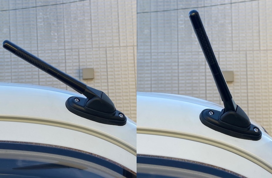 新型のマイクロアンテナは アンテナの角度を自由に変えられるので 倒せば実際の車高くらいに低くなり、210ミリ規制の立体駐車場や機械式駐車場もそのままで入庫ができます。 アンテナ折り防止に