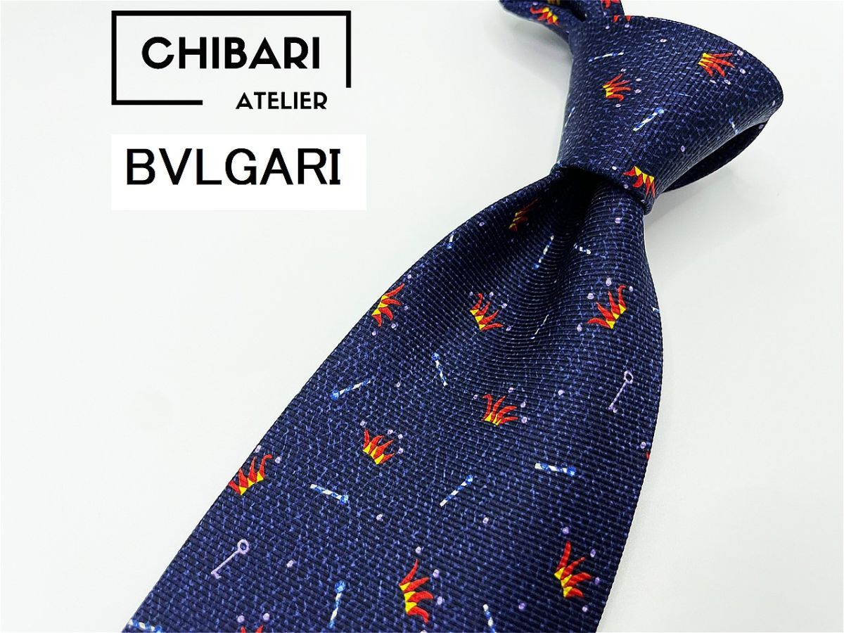 BVLGARI ブルガリ ドット柄 ネクタイ 3本以上 送料無料 メンズ ネイビー 1002018