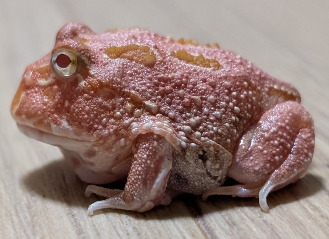 今回出品させて頂きます商品はツノガエル類の中でカラーバリエーションの豊富さでダントツのコレクション性の高さも人気となったクラウンウェルツノガエルのストロベリー品種の自家繁殖の厳選個体となります。