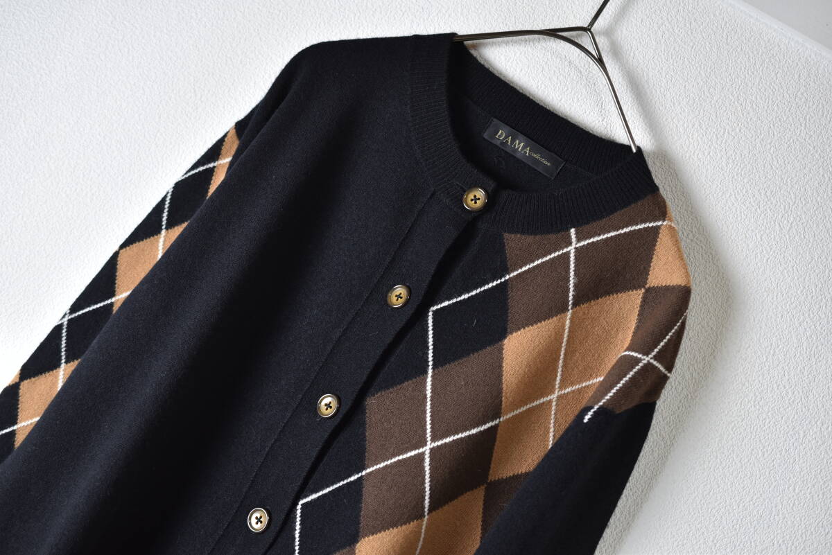 DAMA ダーマコレクション アーガイル柄ウールニットカーディガン 黒色