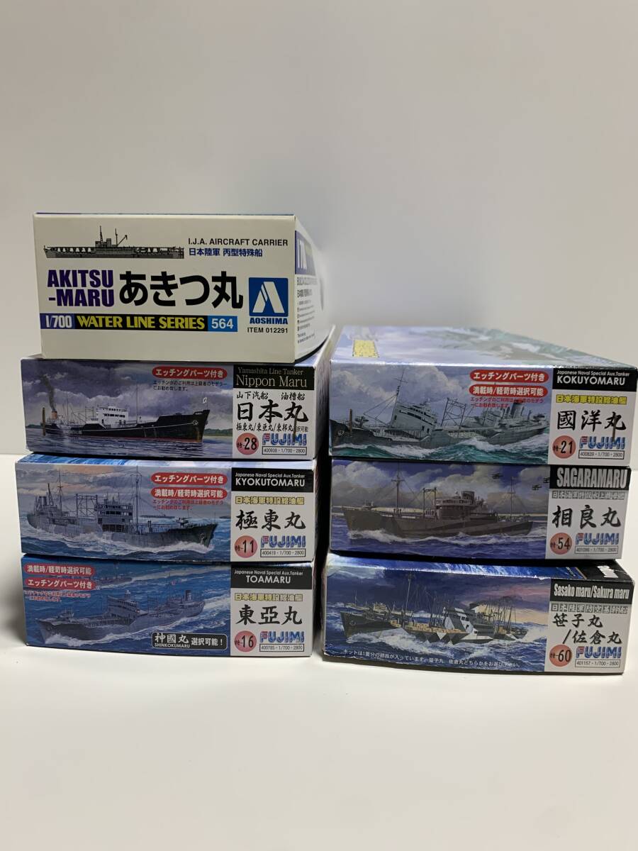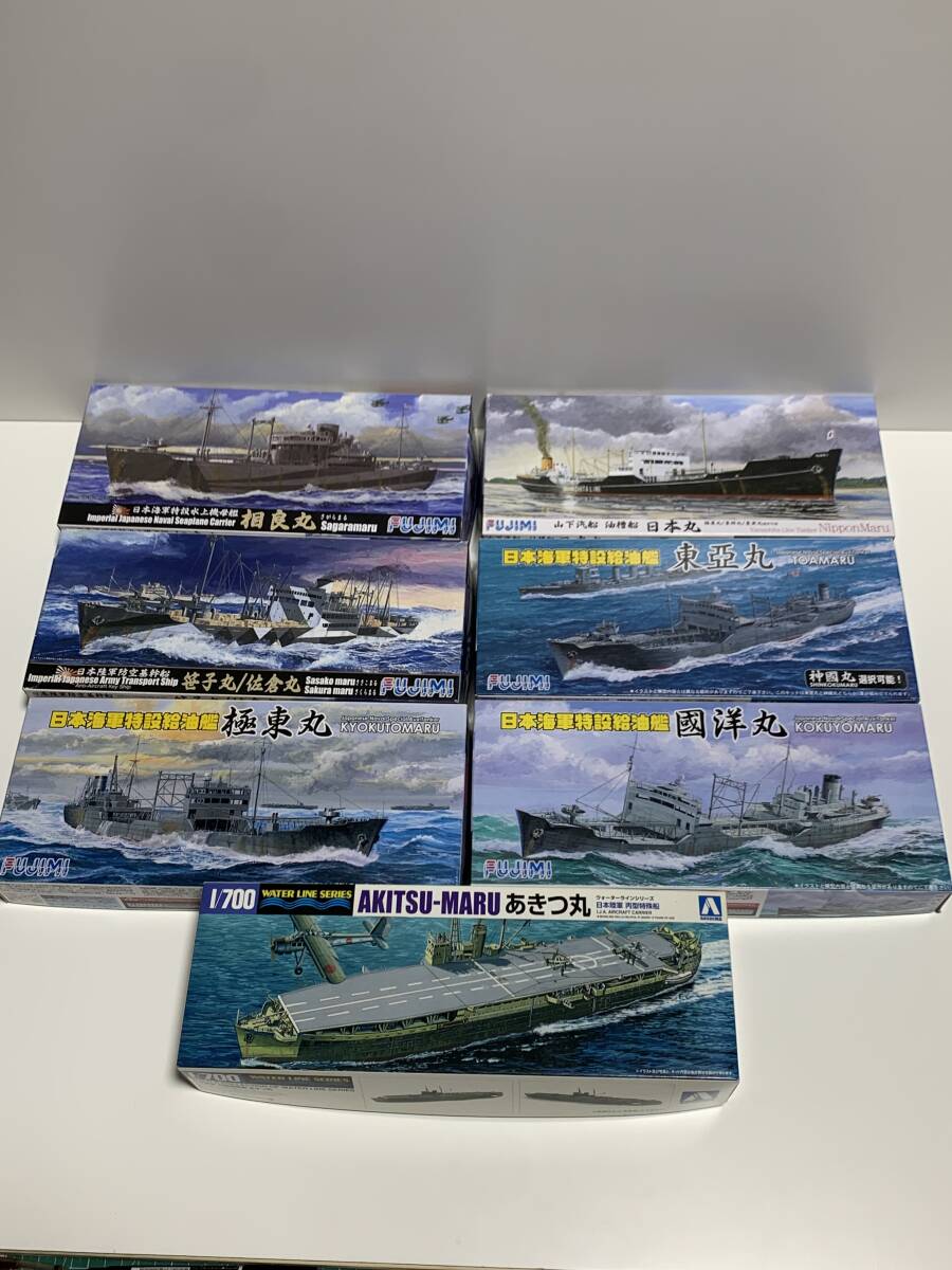 ⑮未組立品 1/700 特設給油艦 國洋丸+極東丸+東亞丸+特設水上機母艦 相良丸+陸軍防空基幹船 笹子丸/佐倉丸+あきつ丸+油槽船 日本丸