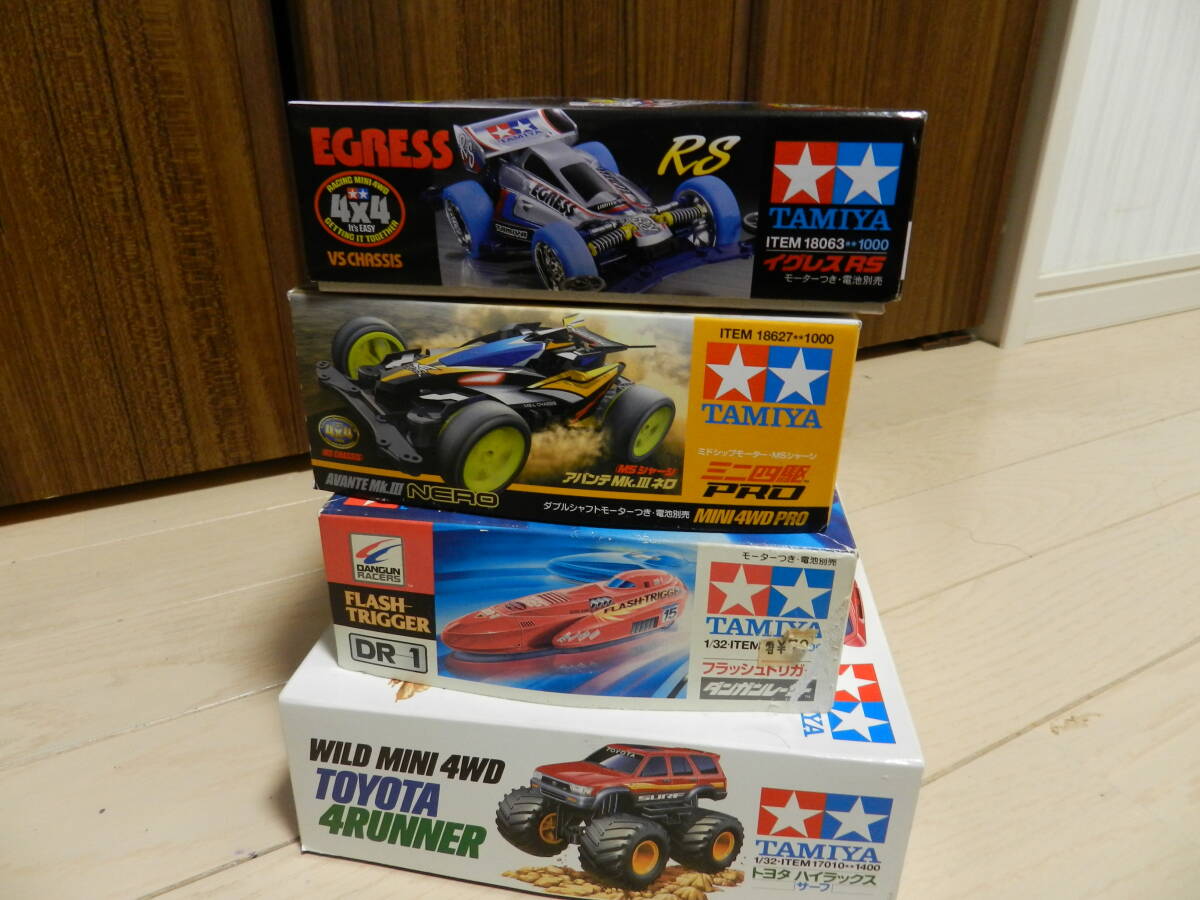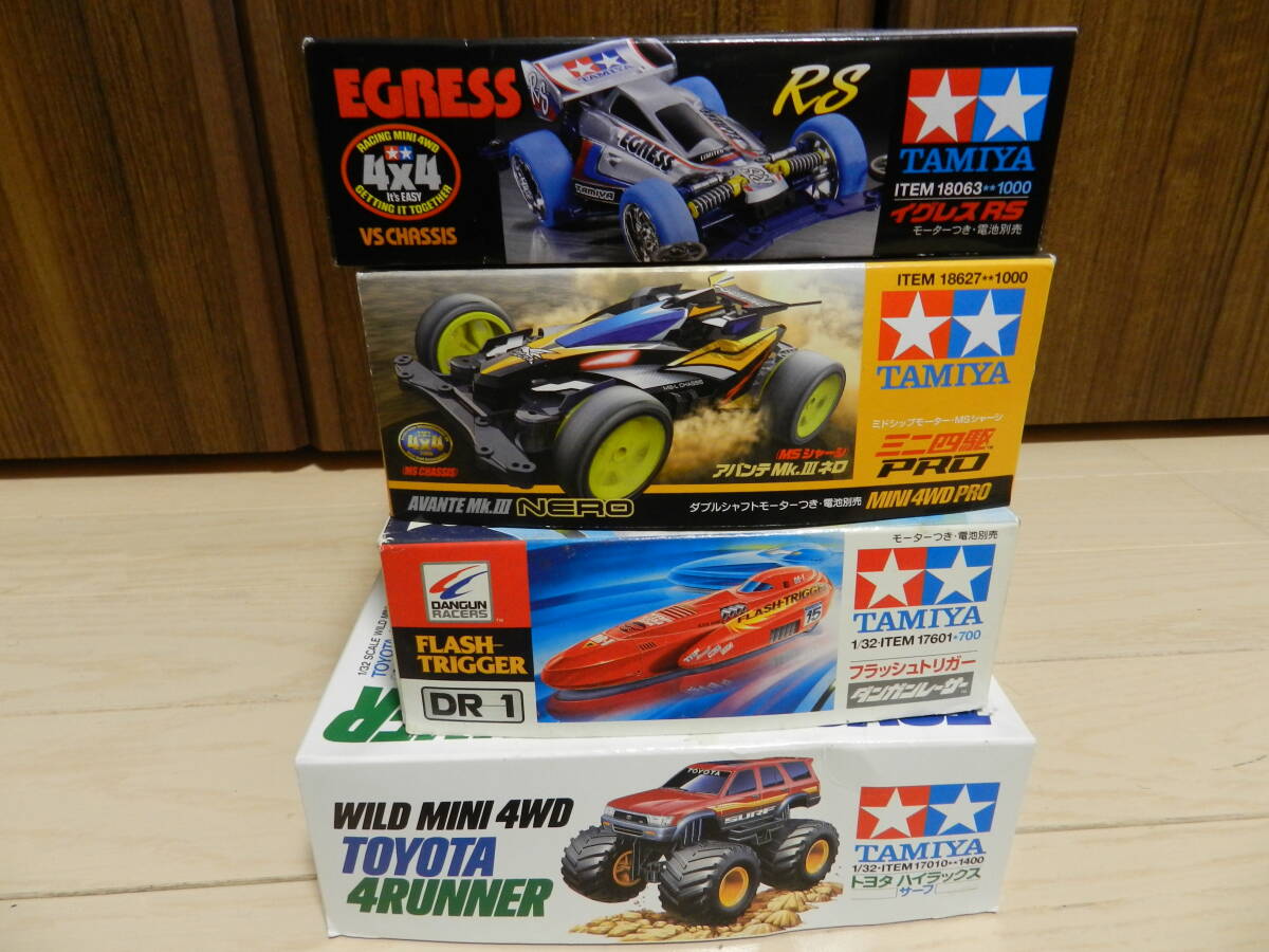 ミニ4駆・ダンガンレーサー 4台セット <タミヤ> イグレスRS・アバンテMk.Ⅲネロ・トヨタハイラックス・フラッシュタイガー