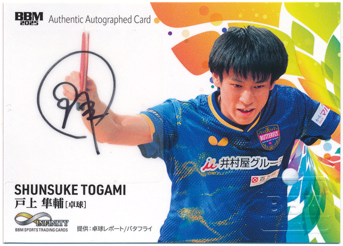 Product name: BBM 2025 Infinity インフィニティ 戸上隼輔 卓球 世界選手権 金メダリスト 直筆サインカード 45/70 Authentic Autographed Card