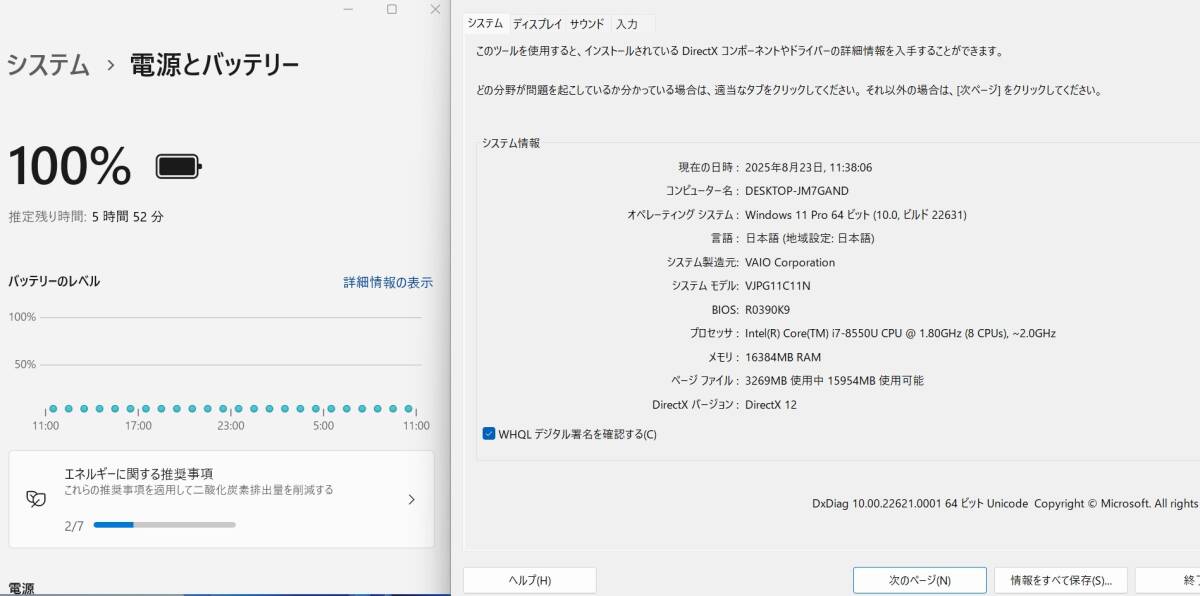 Product name: ★第8世代 i7搭載 Sony VAIO VJPG11C11N Core i7-8550U/メモリ16GB/SSD256GB/1920x1080 /Windows 11 Pro・30日間返品保証