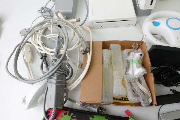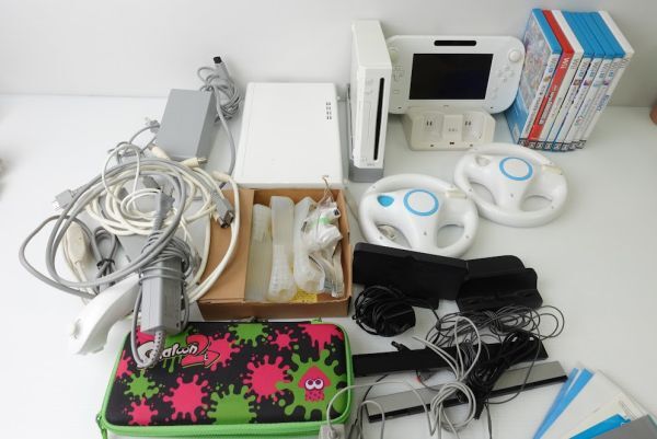 【k1763】任天堂 WiiU プレミアムセット 32GB ホワイト ソフト8本 マリオカート8 ポッ拳 スプラほか スプラトゥーン2ポーチ付き