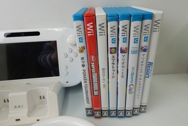 Product name: 【k1763】任天堂 WiiU プレミアムセット 32GB ホワイト ソフト8本 マリオカート8 ポッ拳 スプラほか スプラトゥーン2ポーチ付き