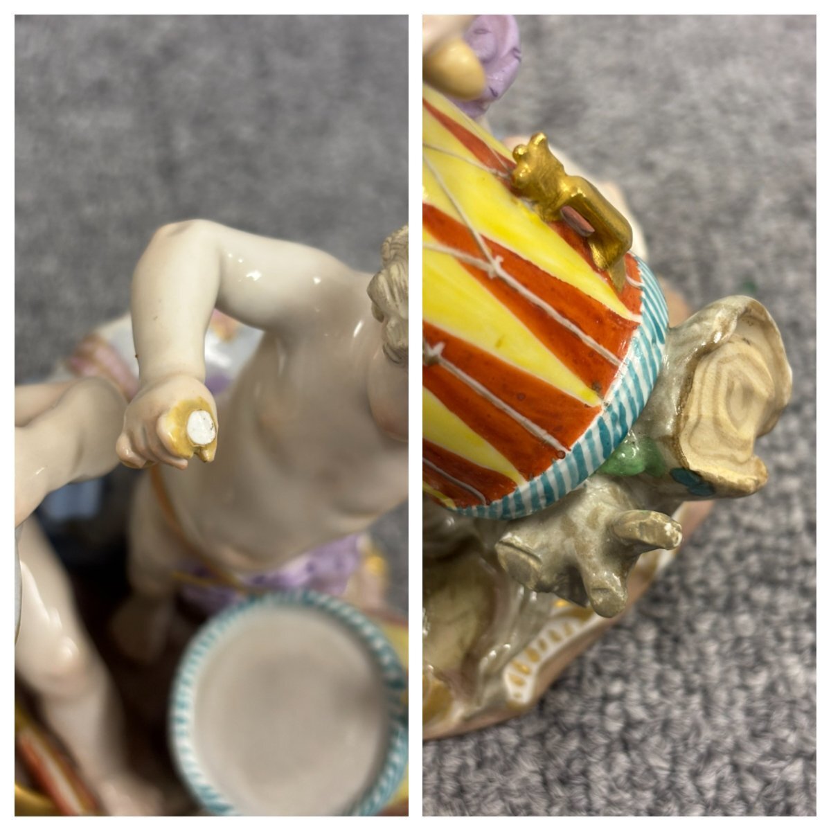 【★100】【1円スタート】【マイセン フィギュリン(陶器人形)※破損有】中古 MEISSEN 2人の天使 古美術品 置物 アンティーク オブジェ