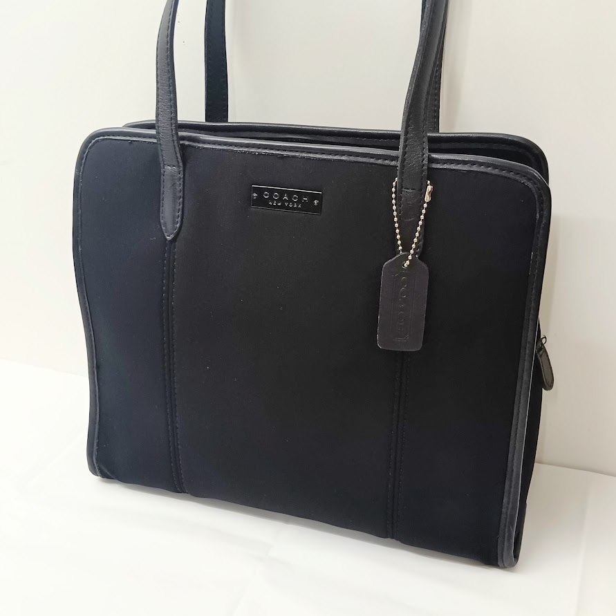 Product name: 【4861】COACH コーチ ナイロン×レザー トートバッグ ショルダーバッグ 6206 ブラック 黒 ハンドバッグ ビジネス シンプル レディース