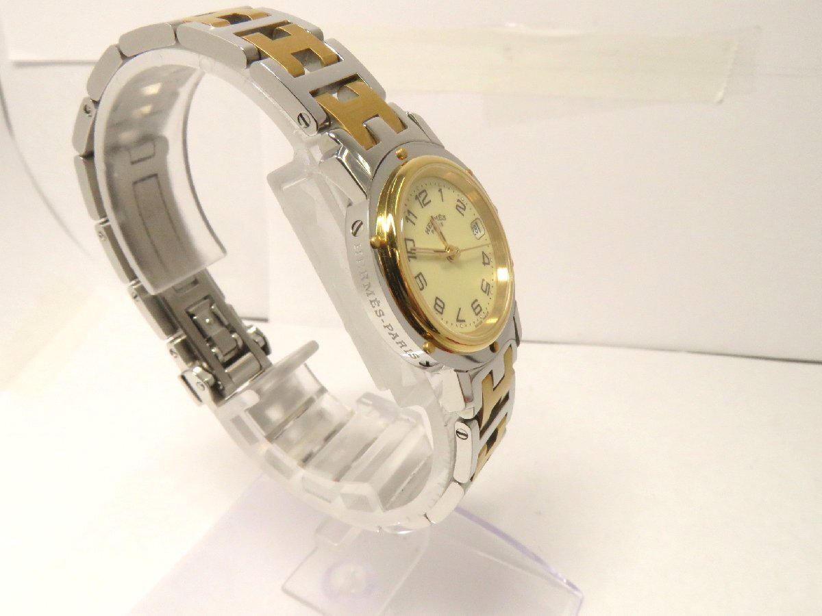 1円開始◆稼働◆ エルメス CL4.220 クリッパー ベージュ クオーツ レディース 腕時計 AC862