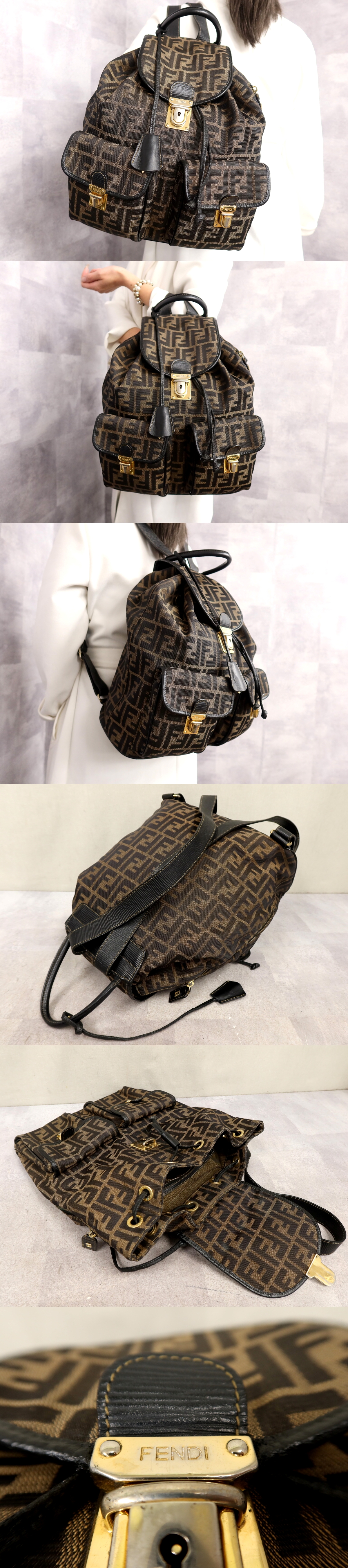Product name: 超美品●FENDI フェンディ●ズッカ●FFロゴ●ナイロンキャンバス エピ カーフ レザー 本革●リュックサック●黒 ブラウン●G金具●Js63710
