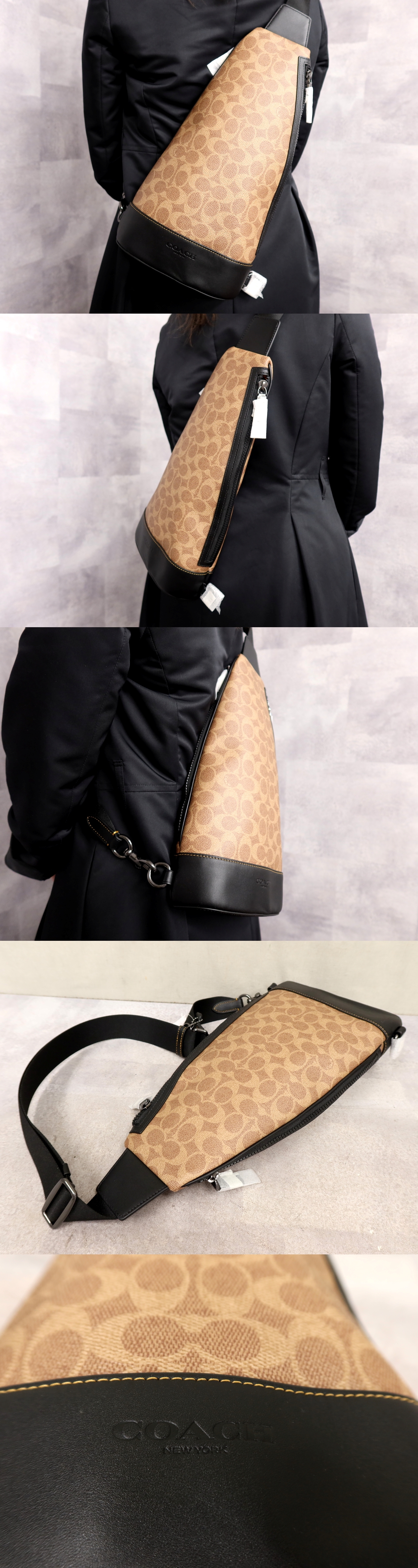 Product name: 未使用●コーチ●メンズ●ドミニク スリング パック●CY801●シグネチャー●PVC カーフ レザー 本革●ボディ バッグ●ブラウン 黒●Js64759