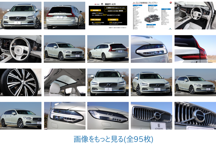 ボルボのフラッグシップステーションワゴンV90。その中でもハイグレードモデルとなる”B6インスクリプションAWD エアサス仕様”が入庫いたしました。後期モデルとなり、最高出力300PS/最大トルク420N・mの2リッター直4ガソリンターボエンジン+スーパーチャージャーに、同13.6PS/同40N・mのISGM(インテグレーテッド・スターター・ジェネレーター・モジュール)と48Vリチウムイオンバッテリーを組み合わせたマイルドハイブリッドシステムを採用。また、世界一とも称される安全装備(インテリセーフ機能)も後期からは標準にてフル装備されるようになりました。その他、オプションのBowers&Wilkins製プレミアムオーディオや開放感あふれるパノラマサンルーフ、4ゾーンクライメイトコントロールといった嬉しいオプションも装備しています。当然ですが現状で不具合は皆無です。今回やや距離が伸びているという理由だけで激安にて出品させていただきます。人気車種、人気グレードだけにお探しの方も多いのではないかと思います。完全早い者勝ちですので、お探しだった方は是非お早目にお問い合せ下さい。