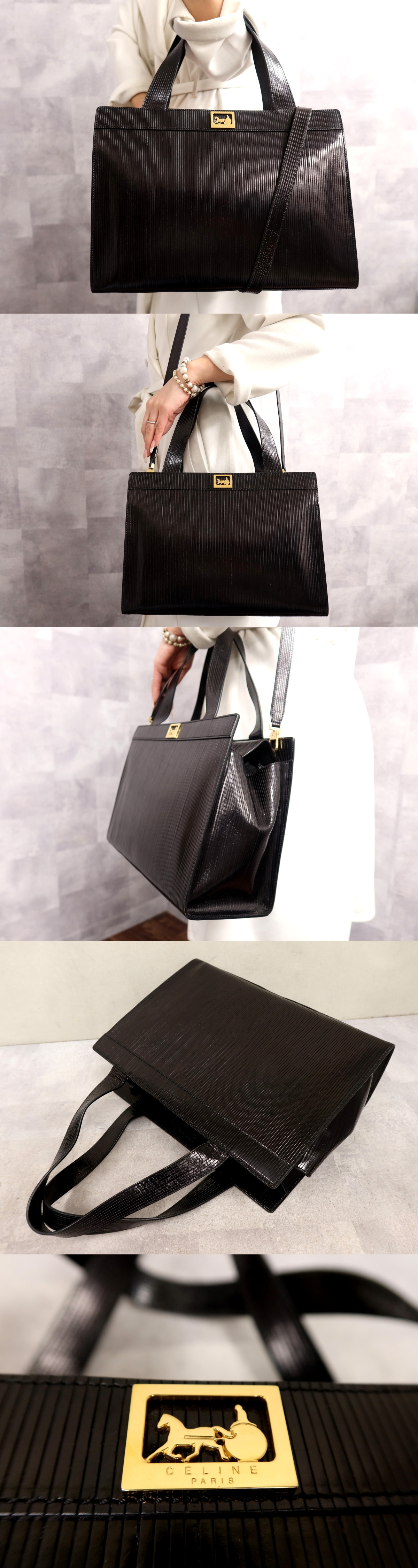 Product name: ●超美品●CELINE セリーヌ●馬車金具●カーフ レザー 本革●2way トート バッグ●黒●ゴールド金具●肩掛け●B5 収納 かばん●Js65565