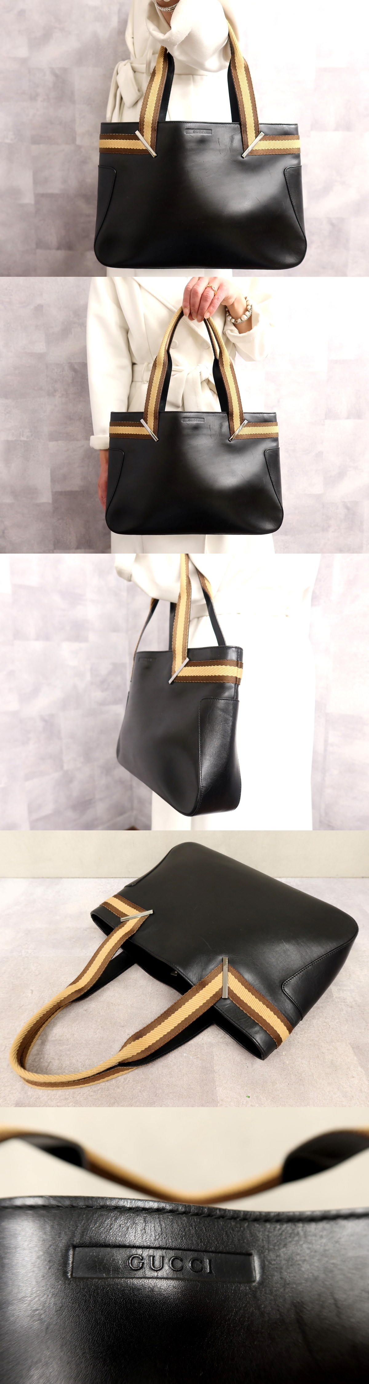 Product name: ●超美品●GUCCI グッチ●シェリー●ロゴ型押し●カーフ レザー 本革●トート バッグ●黒●シルバー金具●イタリア製●B5 収納●Js65538