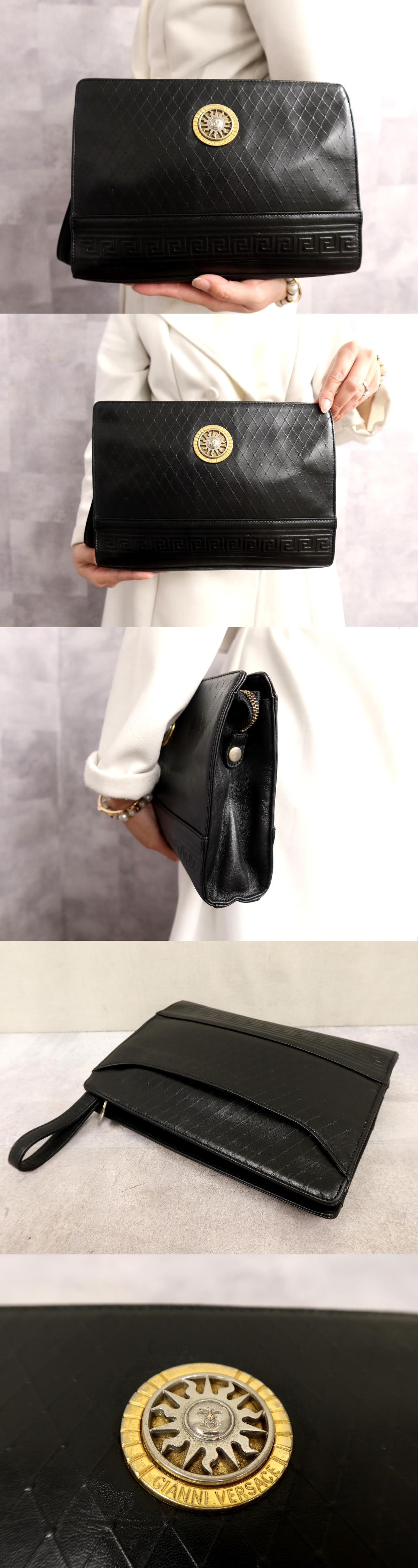 Product name: ●超美品●ジャンニ・ヴェルサーチ●サンバースト●太陽神●カーフ レザー 本革●セカンド クラッチ バッグ●黒●ヴィンテージ●Js66315