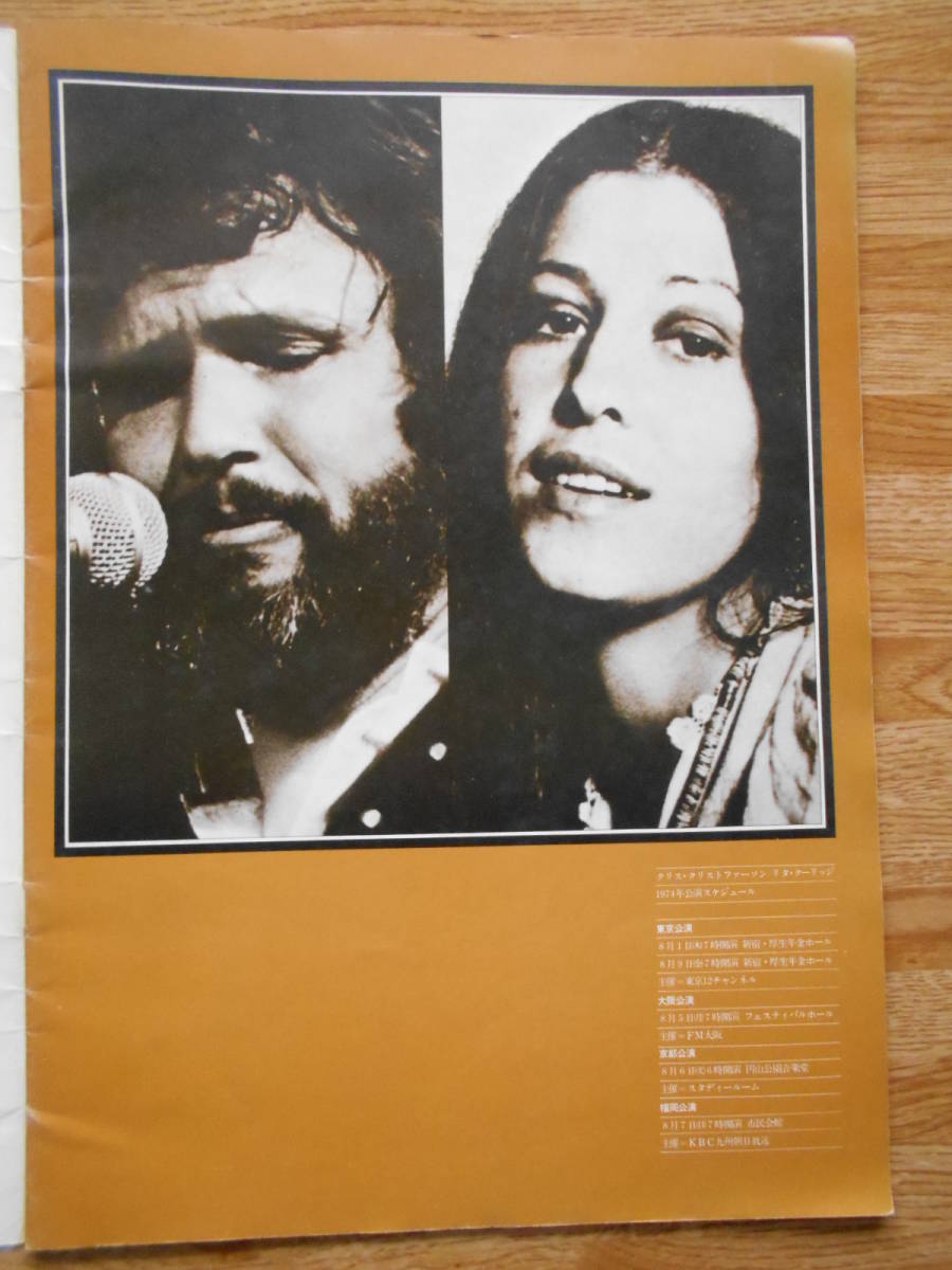 「クリス・クリストファーソン&リタ・クーリッジ 1974来日公演ツアーパンフレット&チケット 」です。