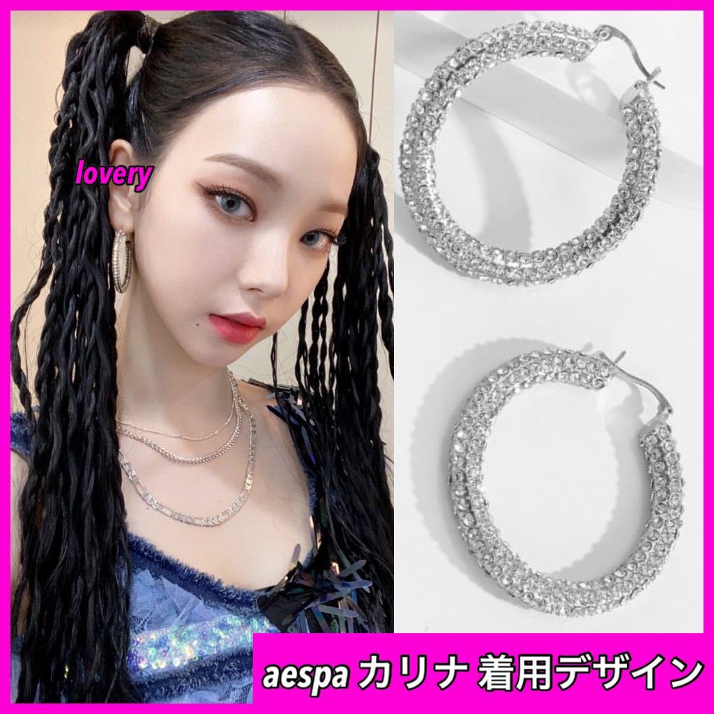 aespa カリナ 着用デザイン キラキラフープビシューピアス フープピアス 韓国ファッション 韓国アイドル リングピアス ビシューピアス