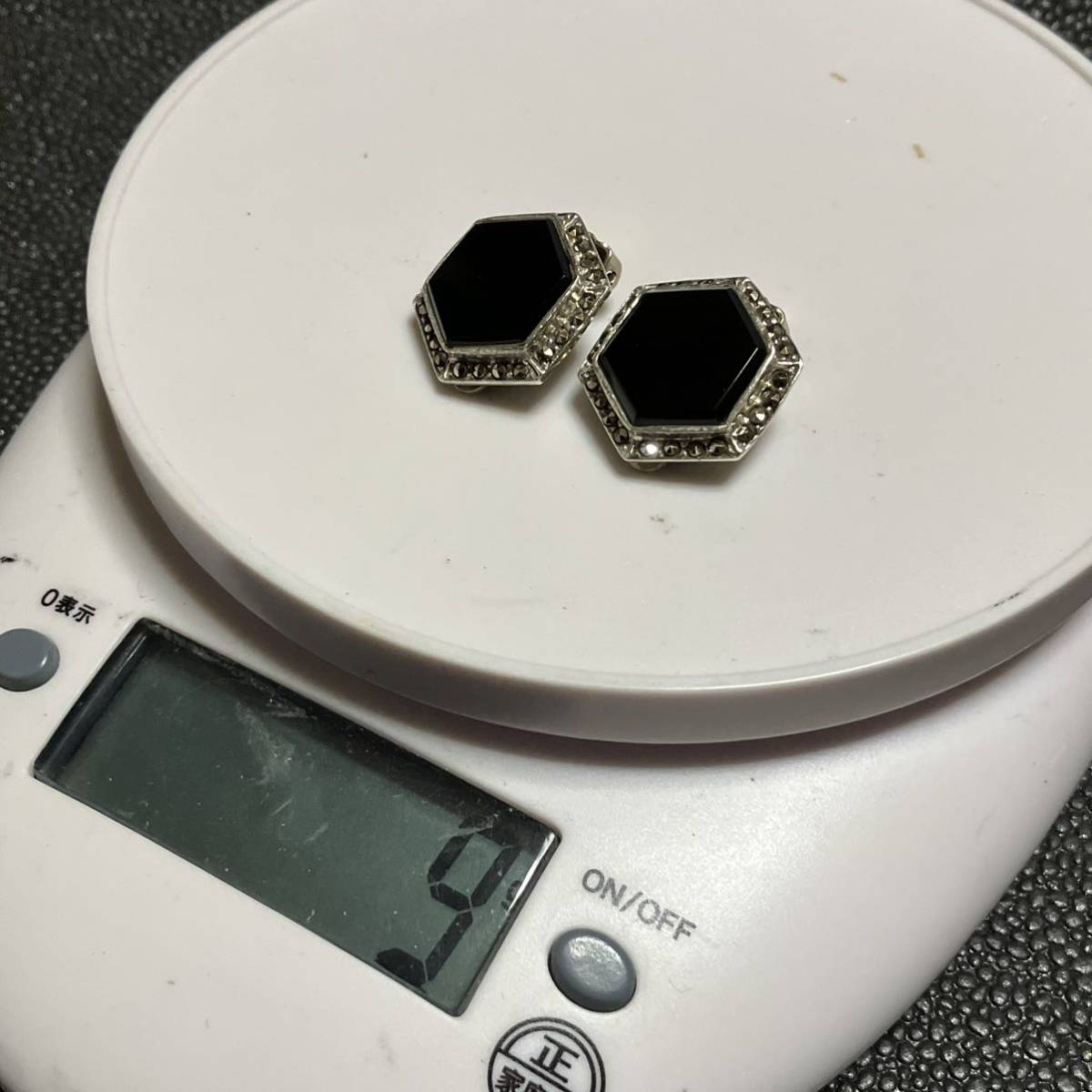 【ws275】silver 925 シルバー イヤリング オニキス? マーカサイト 六角形
