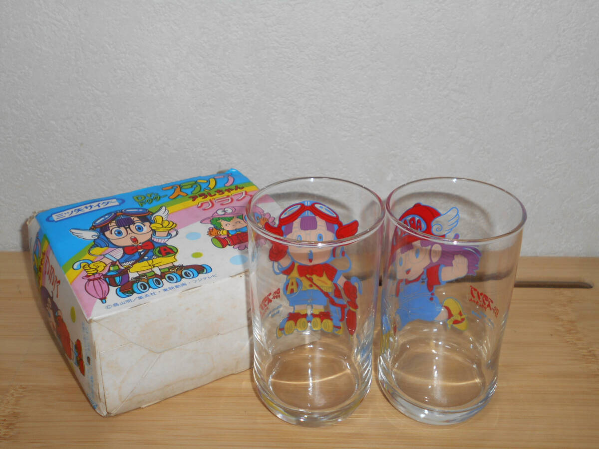 Dr.スランプ アラレちゃん  三ツ矢サイダー グラス 2コ   レトロ  デッドストック です。古い物なので箱に傷み、落書き、劣化、シミ汚れ小さい破れ、汚れがあります。画像でご判断ください。