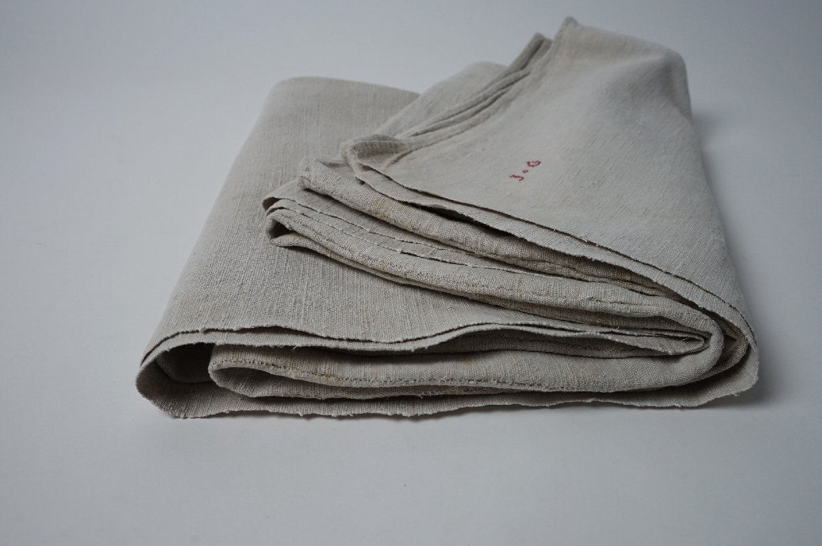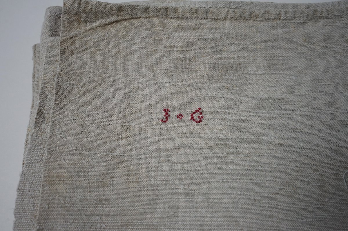 Product name: フランス アンティーク シャンブルリネン ホームスパン シーツ 麻 リネン 手織り 布 刺繍[D709]