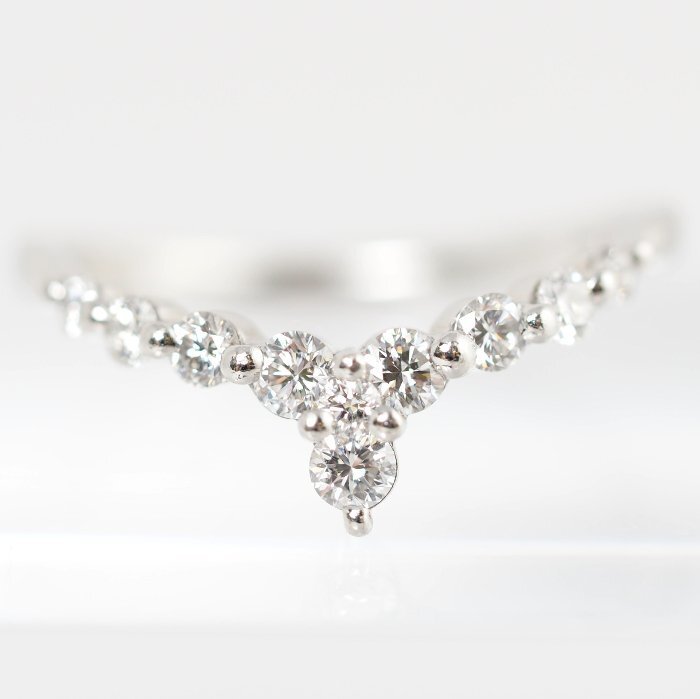 サイズは約12.5号、内径約17mmです。素材はPt950、ダイヤモンドは0.36ct、女性らしいデザインで沢山ダイヤモンドがキラキラと輝きます。