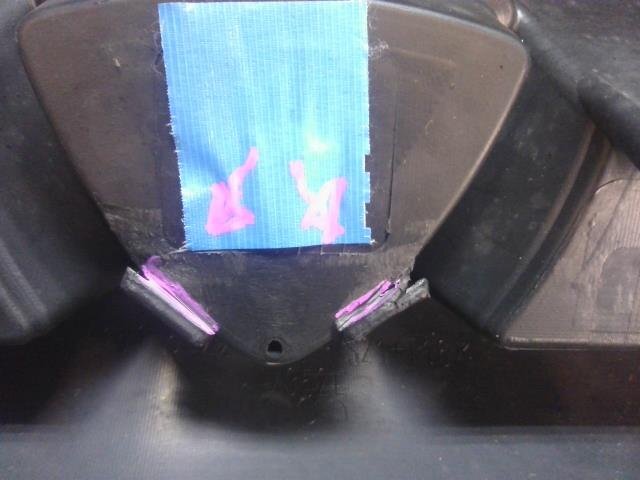 備考11/Rバンパー/2/F151-50221/下側中央(ヘコミ/ツメ折れ/取付折れ)有/中央ヘコミ有/キズ/色あせ/引っ?きキズ有