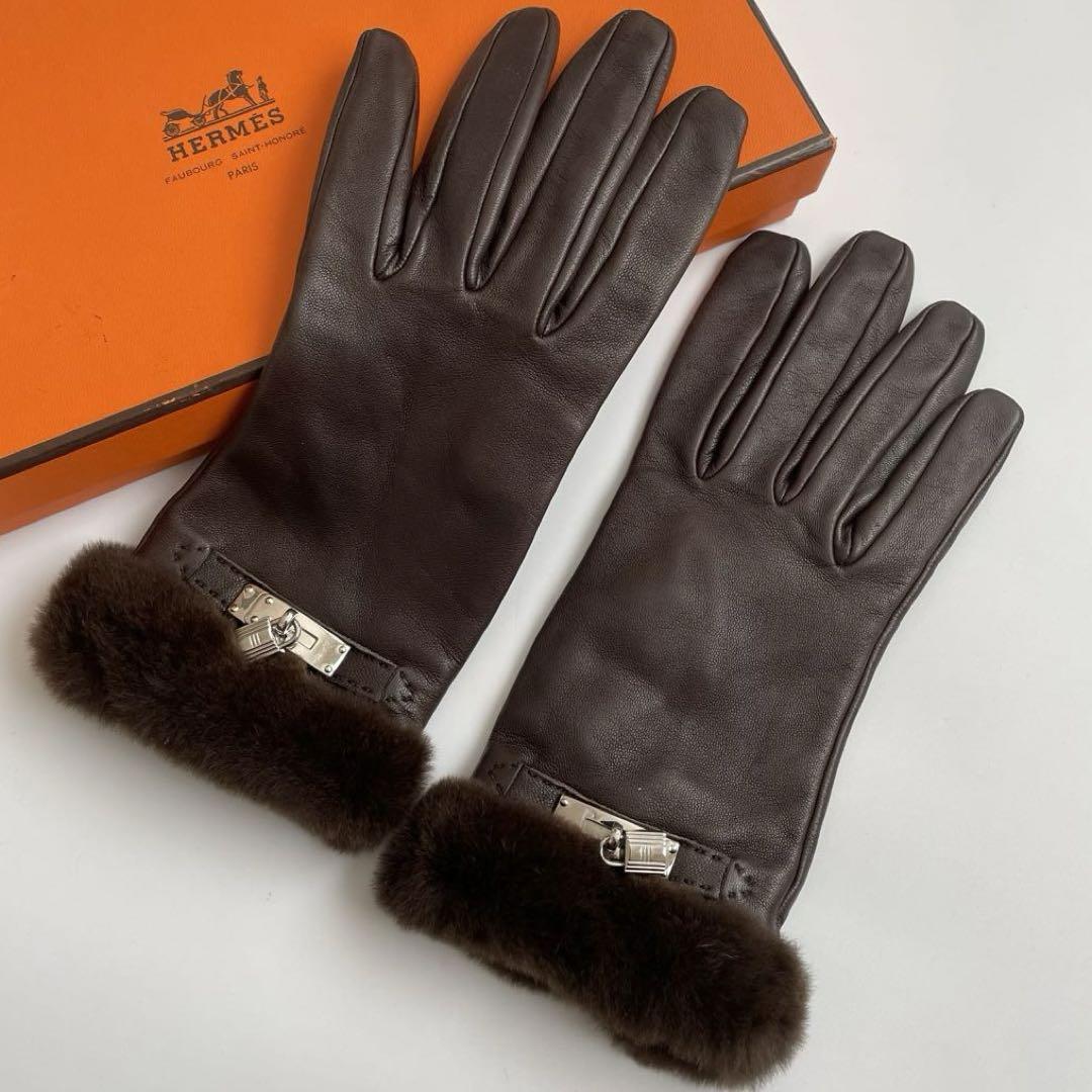 【極美品★箱付き】HERMES エルメス ケリー プリンセスグローブ 5本指 手袋 ラムスキン レザー ミンクファー ブラウン 茶 7