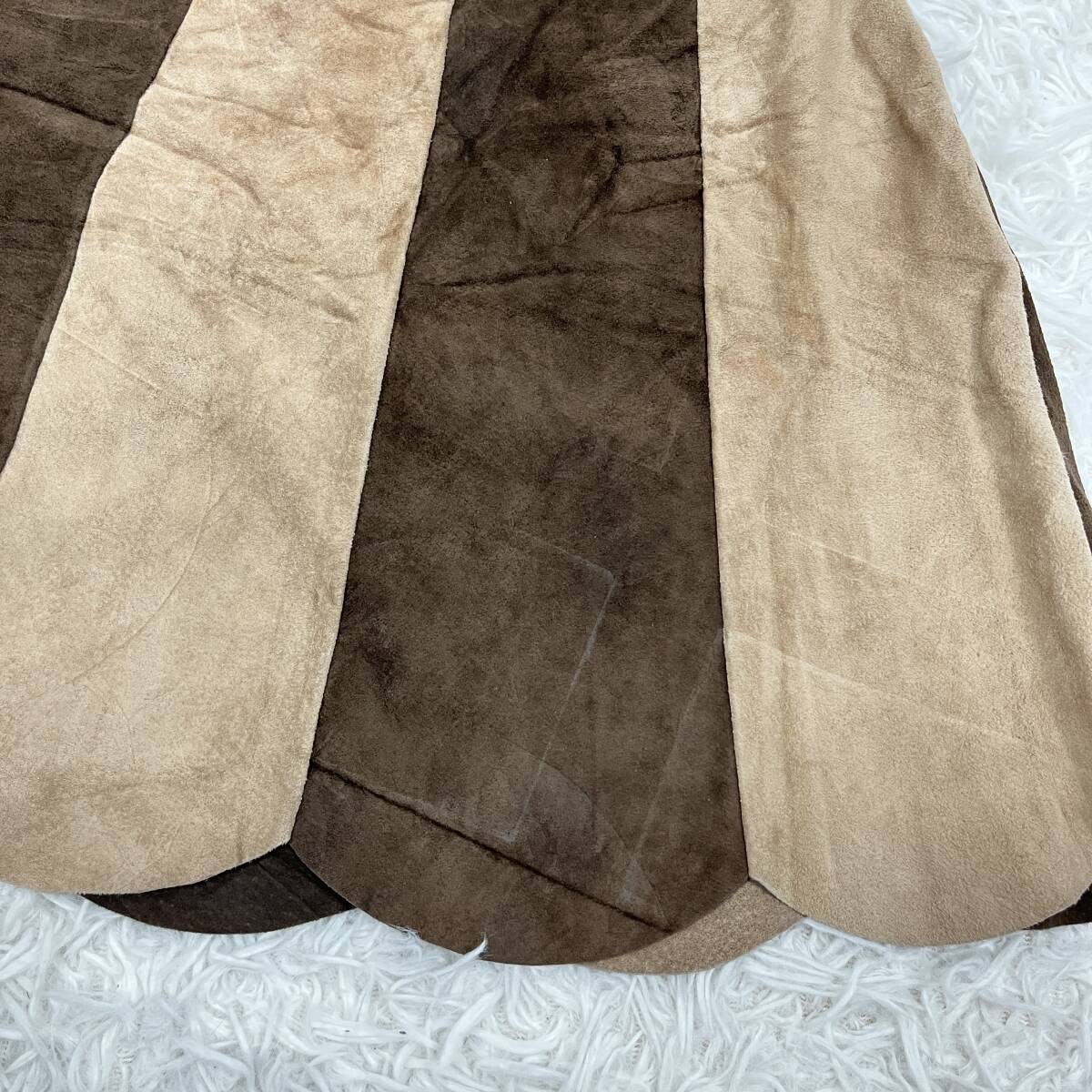 【2628】ブラウン ミニスカート スカラップ 台形スカート フェイクスエード スナップボタン 配色切り替え レザー調 フリル 可愛い