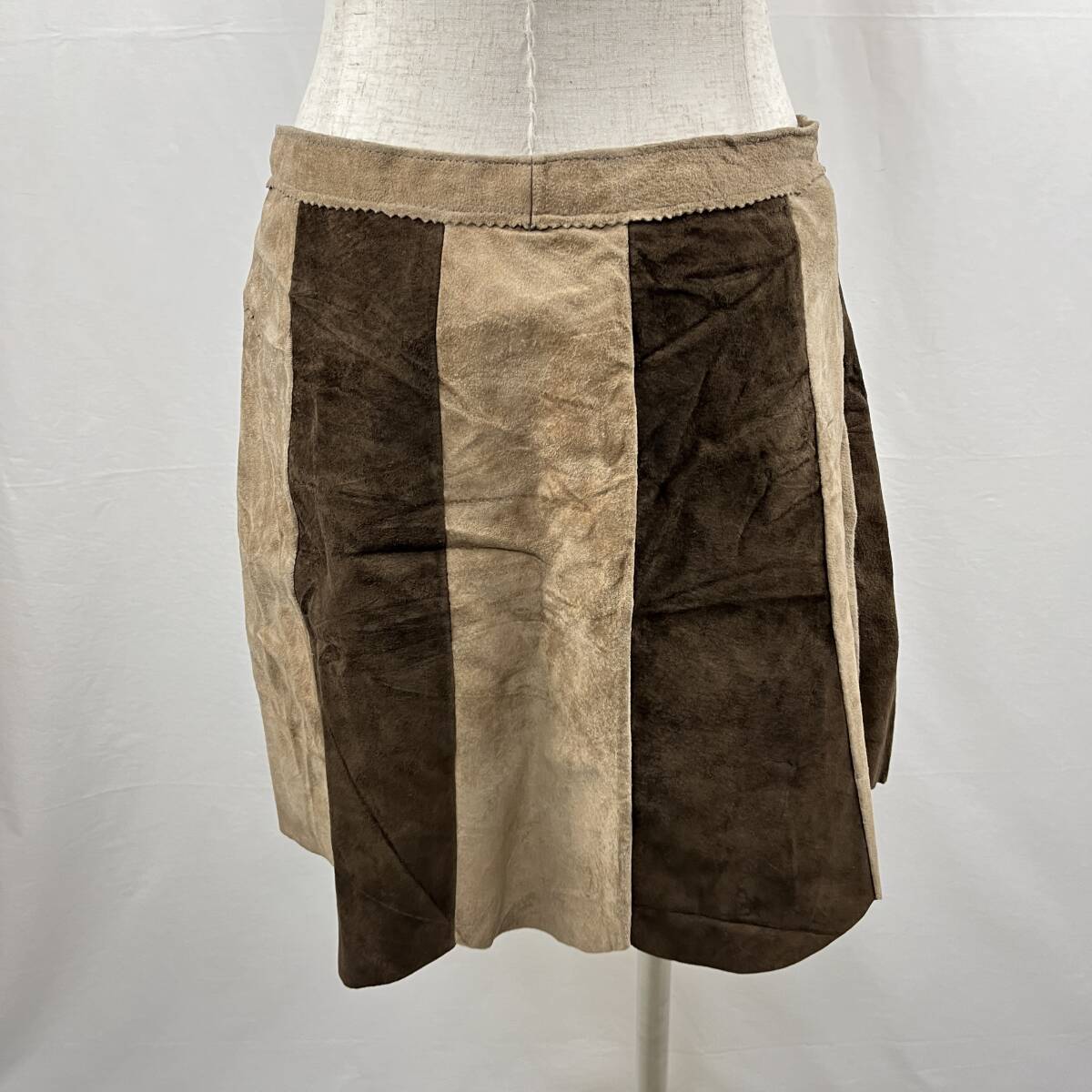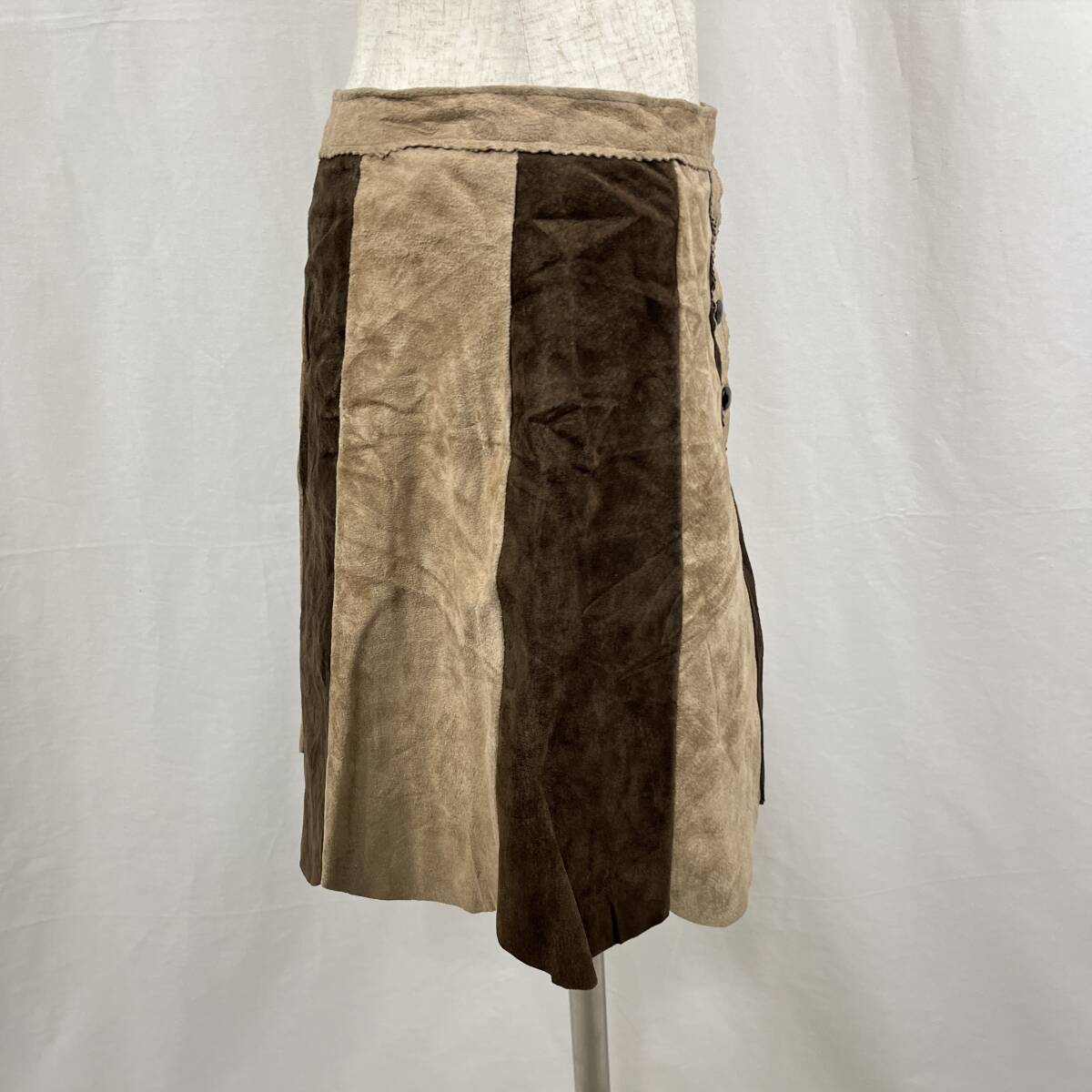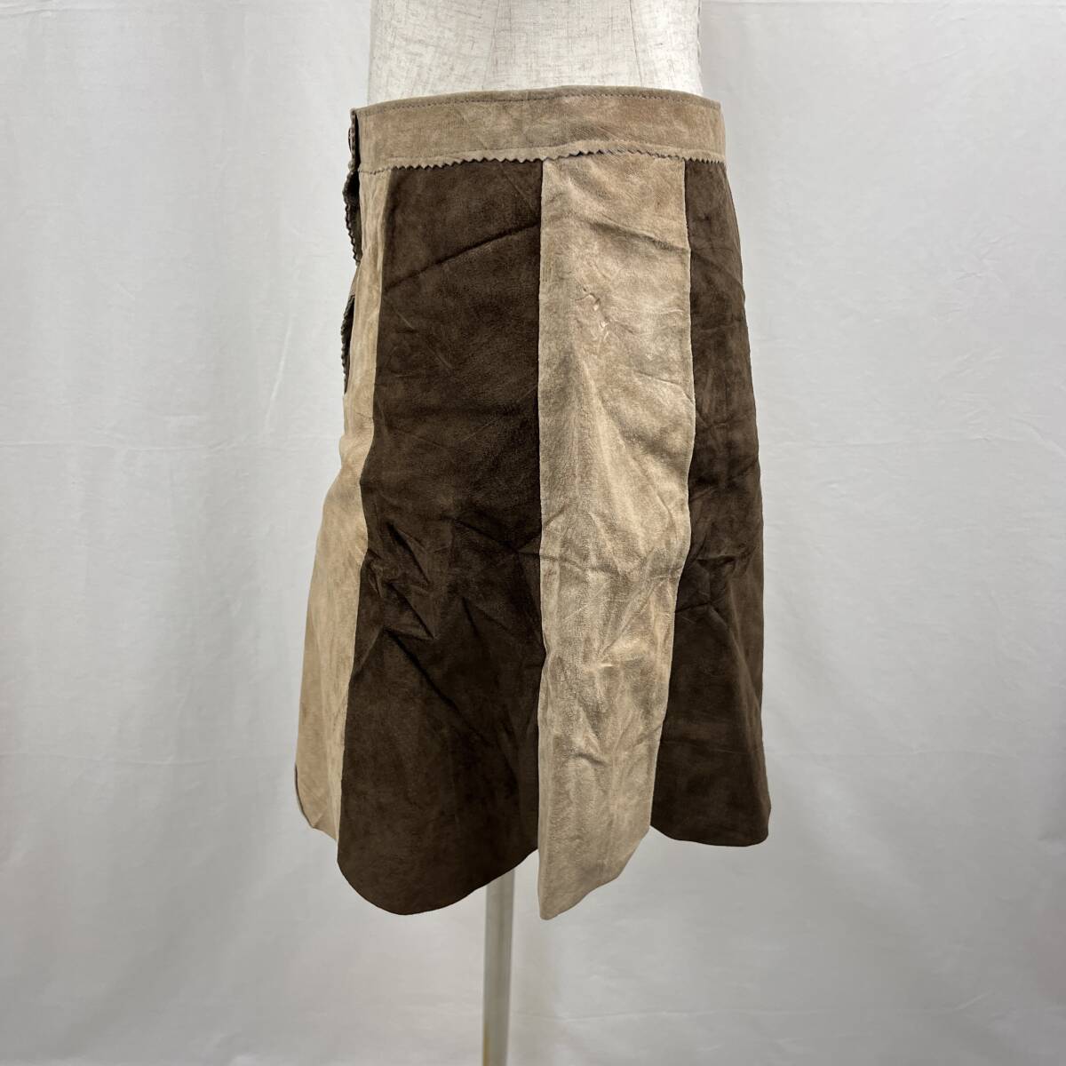 Product name: 【2628】ブラウン ミニスカート スカラップ 台形スカート フェイクスエード スナップボタン 配色切り替え レザー調 フリル 可愛い