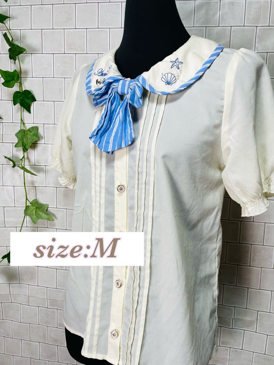 Product name: ★定価4,800円 レディース axes femme 刺繍入りリボン付きマリンブラウス 生成 半袖 ブラウス シャツ 071124-013