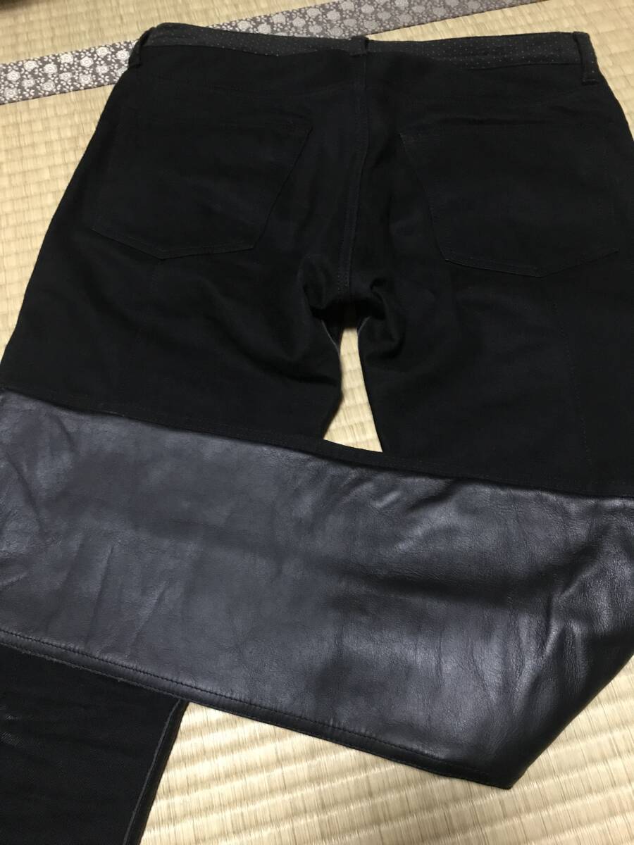 JUNYA WATANABE COMME des GARCONS MAN ブラックレザー×ブラックデニム切り替えパンツです。