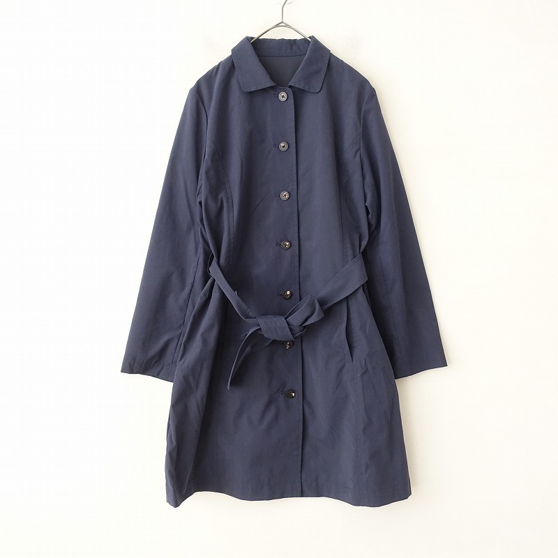 マドモアゼルノンノン Mademoiselle NON NON *ベルト付きコート*40/Lステンカラー紺ネイビー薄手アウター(jk4-2410-144)【52K42】