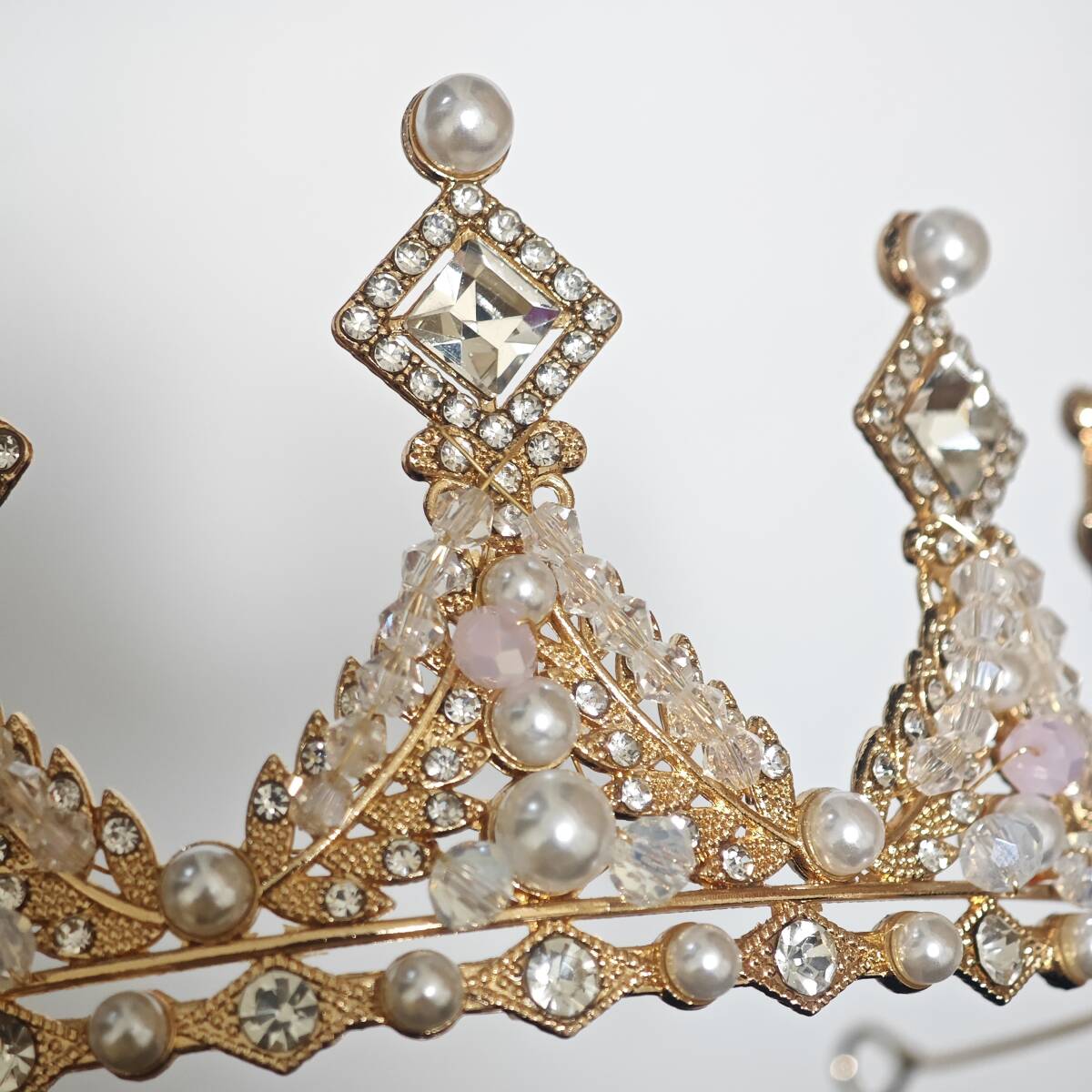 Product name: ウェディング  結婚式 ラインストーン ティアラ 入学式 ブライダル ゴールド ピンク レディース パーティ 豪華 誕生日 王冠 クラウン