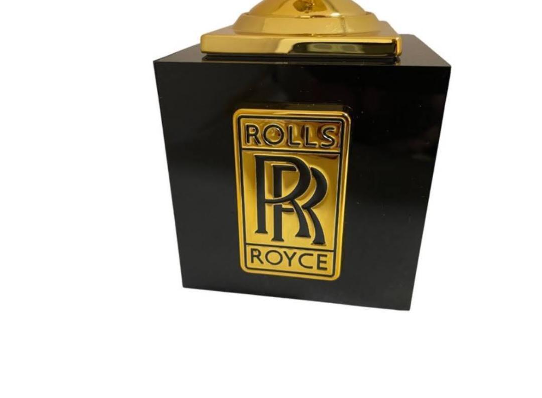 フライングレディのマスコットがRRロゴプレート付きの台座に固定されております。