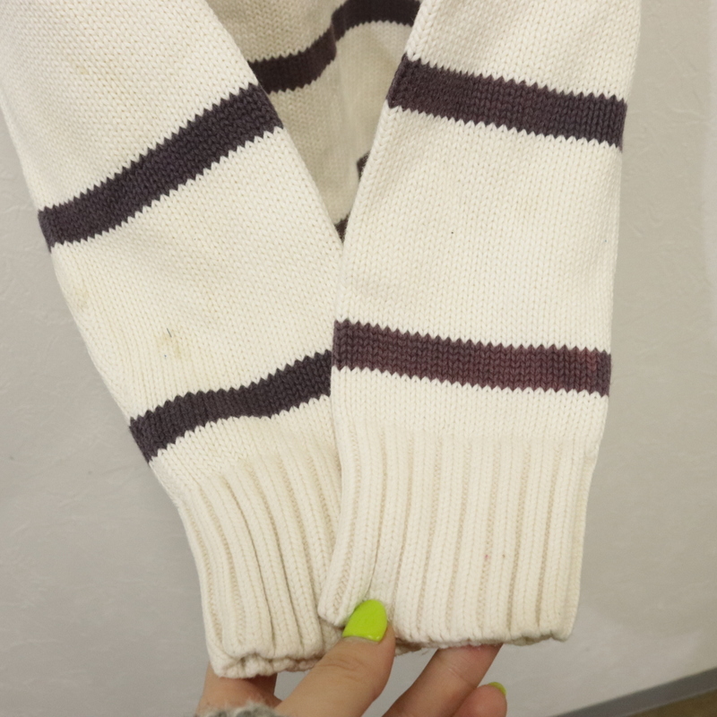 Product name: KD296 2000年代製 キッズ ラルフローレン コットンニットセーター■00s 表記Sサイズ ハーフジップ 白 ハーフジップ ボーダー KIDS 子供服