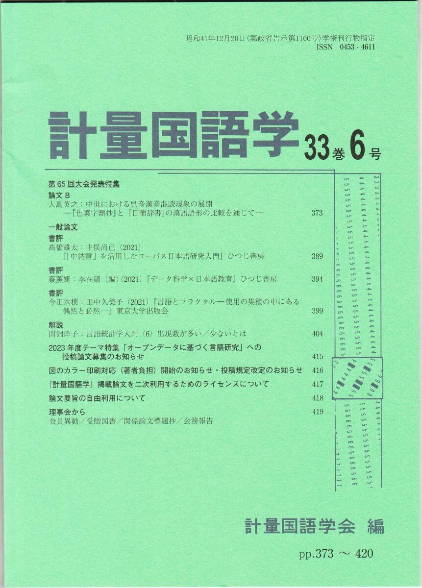 Product name: 『計量国語学』 33巻6号 2022 pp.373~420 Mathematical Linguistics Vol.33 No.6