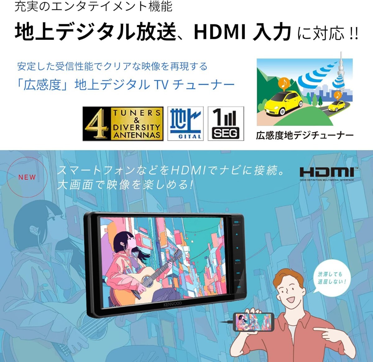 HDMI入力端子の装備により、スマートフォンなどの接続が可能(別途KNA-20HCが必要)