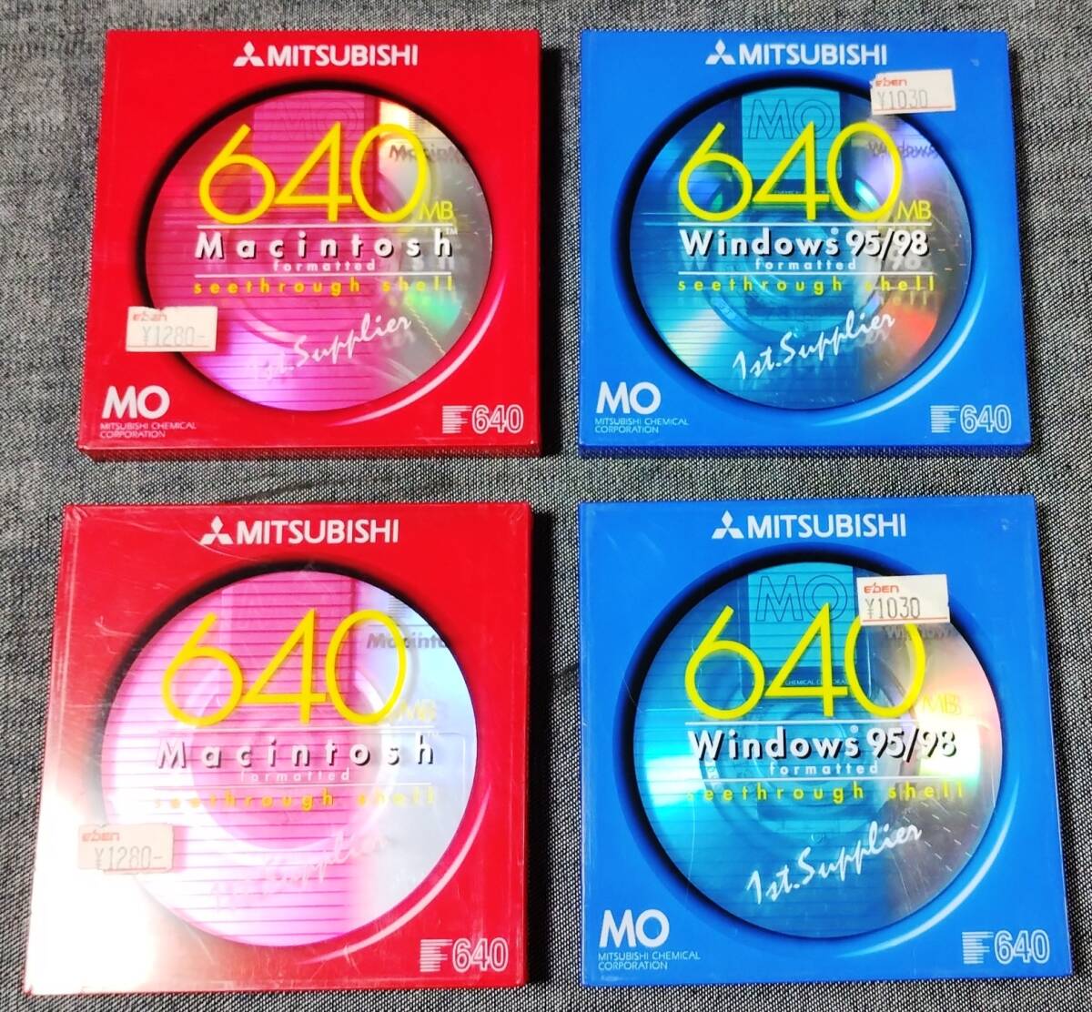 三菱 MOディスク 640MB 4枚セット未開封   Macintoshフォーマット済2枚とWindowsフォーマット済2枚の商品です。