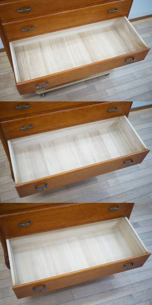 ※最上段中央の引き出しを外した底板に、最上段の左右引出しをロックできるパーツがございます。