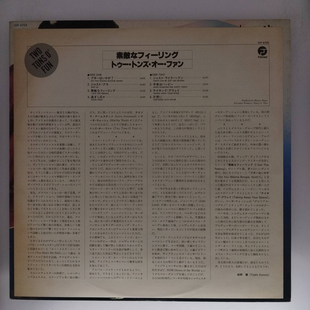 良盤屋◆LP◆ トゥー・トンズ・オー・ファン/素敵なフィーリング◆Two Tons O' Fun◆プロモ盤 白ラベル◆Funk / Soul, Disco◆P-5173