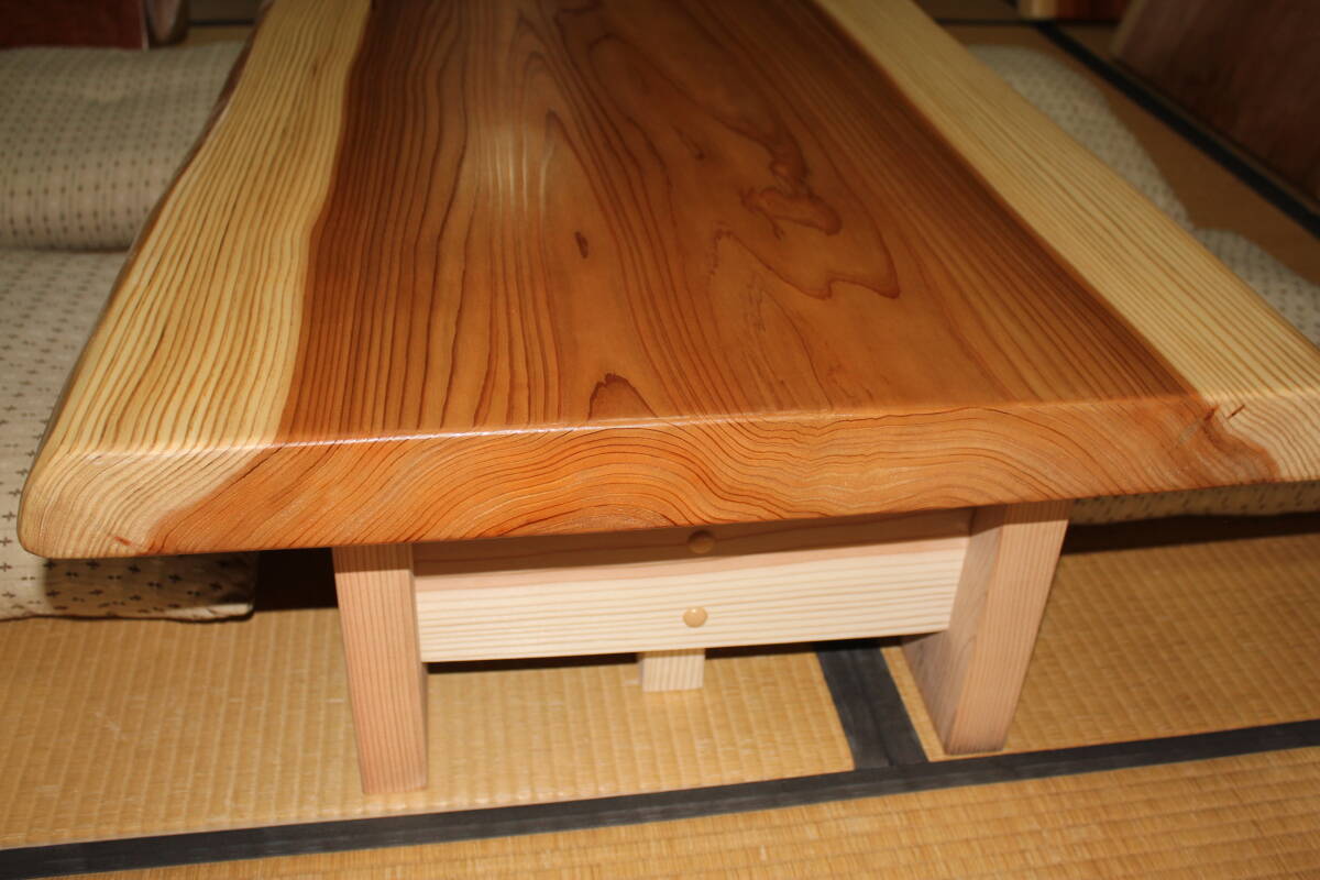 • 仕上げ工程は両面とも帯鋸通し後、サンダー掛け → 艶出し研磨 → 下地塗装・ウレタン塗装を合計8回塗りで丁寧に仕上げました。