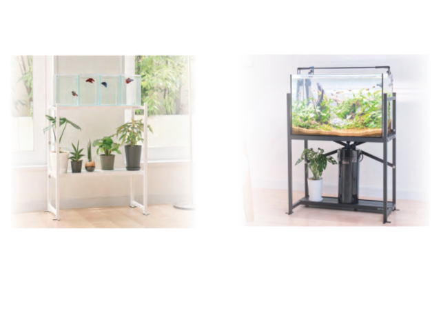 置きたい水槽の奥行に合わせて棚板を組み替えが可能