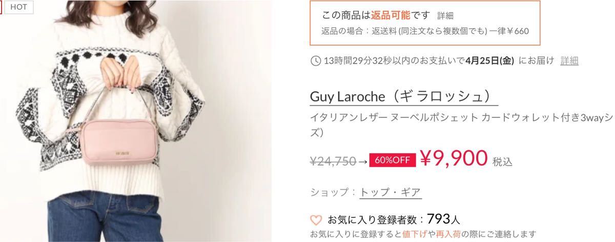 Product name: 新品【定価2万4750円】Guy Laroche ギ ラロッシュ イタリアンレザー ヌーベルポシェット カードウォレット付き3wayショルダーバッグ 本革