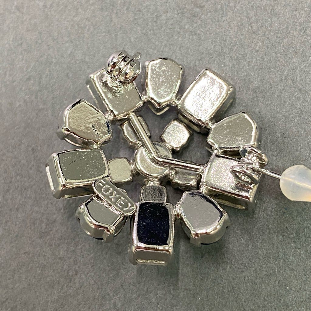 2e10 《美品》 FOXEY フォクシー ブローチ 小物 フラワーモチーフ ラインストーン ビジュー シルバー ブルー レディース