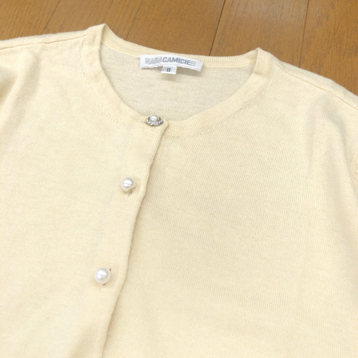 Product name: NARACAMICIE ナラカミーチェ パールボタン クルーネック ニット カーディガン 2(L) アイボリー系 羽織り 長袖 国内正規品 レディース