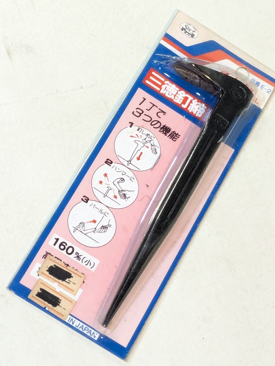 送料無料 三徳釘締 モクバ印 Mokuba best tool 釘抜き バール ハンマー 160 mm(小高周波焼き入れ釘〆未使用品長期保存パッケージ痛みあり