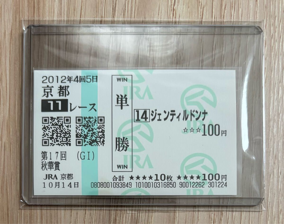 ジェンティルドンナ 2012年秋華賞 現地単勝的中馬券 1番人気130円 牝馬三冠